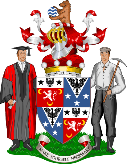 BlazonShield: Quarterly 1 & 4: Gules, a demi lion rampant Argent between in chief a decrescent and an increscent and in base a crescent (Mond); 2 & 3: Azure, on a pile between three mullets Argent an eagle displayed Sable (Lowenthal); overall a baronet's badge. Crest: A demi-bear holding between the paws a fountain, all Proper. Supporters: Dexter: A doctor of science of the University of Oxford holding in the exterior hand a chemical measure glass; Sinister: A labourer holding in the exterior hand a pick resting on the shoulder, all proper. Motto: Make yourself necessary. |